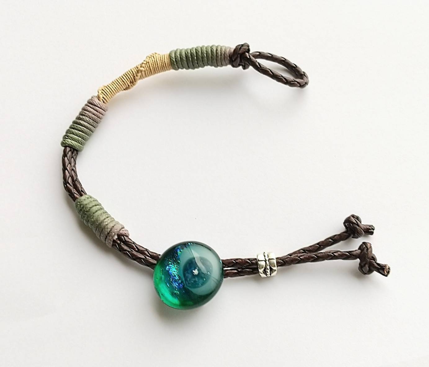 グリーン系ガラスを数重ね星の砂をガラスに挟んで焼いた透明感がある綺麗なガラスブレスレットです。
